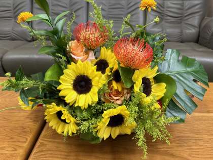 また、今年は本校の正門を入ったところにたくさんのひまわりの花が咲いていますが、今の季節にピッタリなひまわりの花を校長室にも飾っています。ひまわりの花言葉は「私はあなただけを見つめる」「憧れ」です。太陽を追うように咲く「向日性」であることが由来とされています。