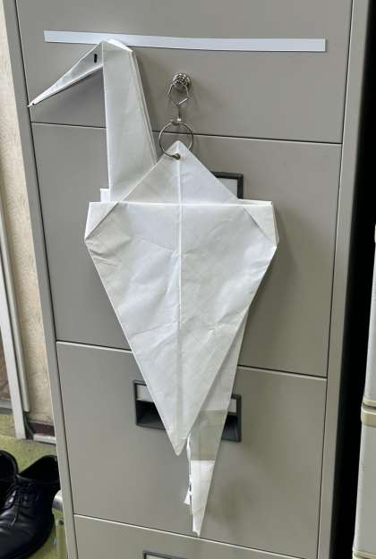 生徒にいただいた巨大な鶴も飾っています。日本文化において鶴は「千年の生を持つ」と言い伝えられ、縁起の良い生き物とされています。