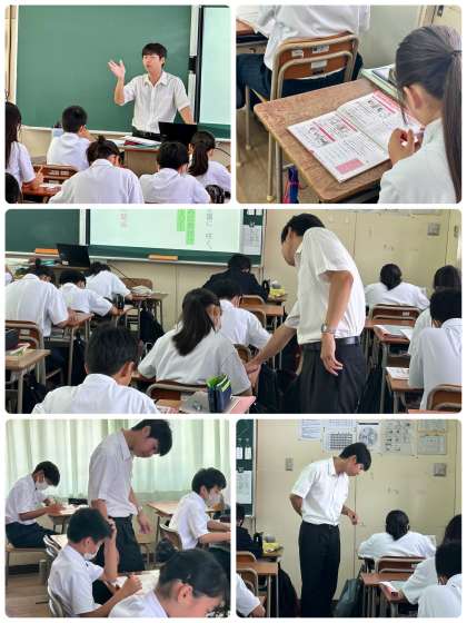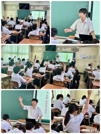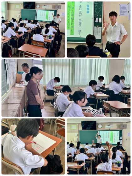 本日7月9日(火)1限目は、大阪市教育センターの指導員の方による、1年1組国語科授業の見学を行いました。「文法の窓1 言葉の単位・文節の関係」(三省堂)の教材を使って、修飾語という文節の働きについての学習をしました。
