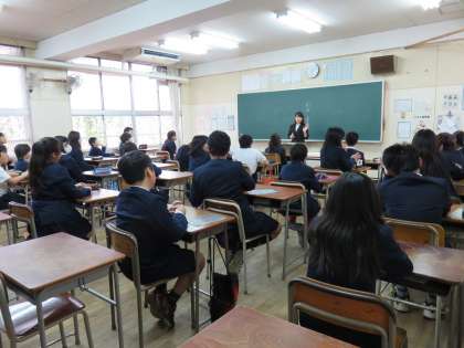 11月25日(水)午後に、加美南部小学校6年生の皆さんを対象に、本校で中学校体験授業を実施しました。今回は、国語科(前田教諭担当)、家庭科(中村教諭担当)、体育科(上山教諭担当)の授業で、中学校進学への意識を高め、少しでも不安を解消してくれることを期待します。