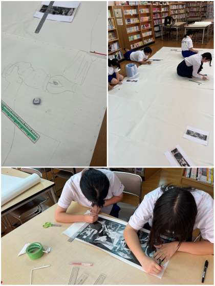 文化発表会で展示する学年作品の下準備を展示エキスパートのみなさんが行っています!毎日、頑張って活動中です。
