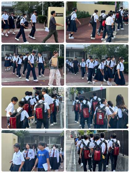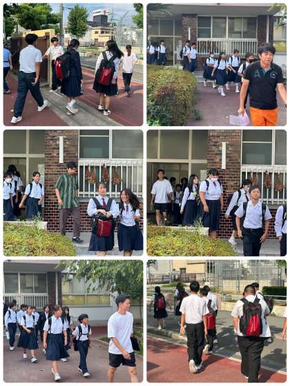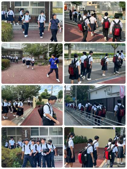 地震と津波の避難訓練の後、教員引率の居住地域ごとの集団下校訓練を行いました。
