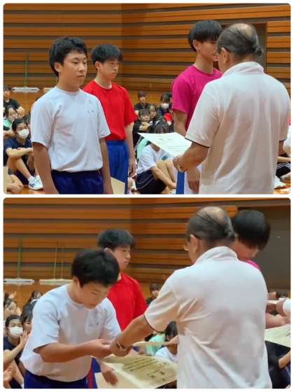 全競技が終了し、山中くんは、床 優勝、鉄棒 第3位、個人総合 第3位という結果となり、立派に表彰されました。おめでとうございます。