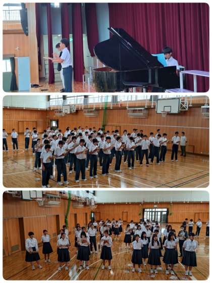 今までパートごとの練習でしたが、初めて学年全体で全パート合わせて練習をしました。