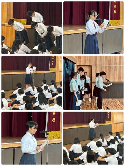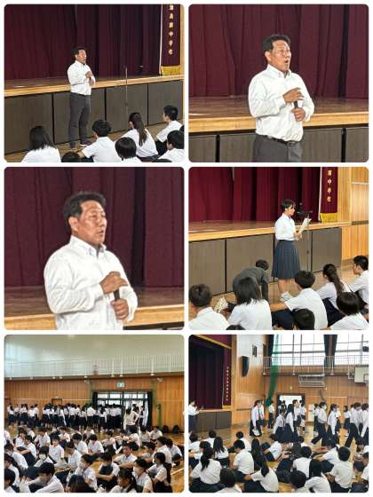 阪井校長先生からは、前期生徒会への労い、後期生徒会への期待のお話と平成28年に選挙権が18歳からになったことや今後の国の政治の動向を他人事ではなく、自分のこととして考えなければならないとのお話がありました。