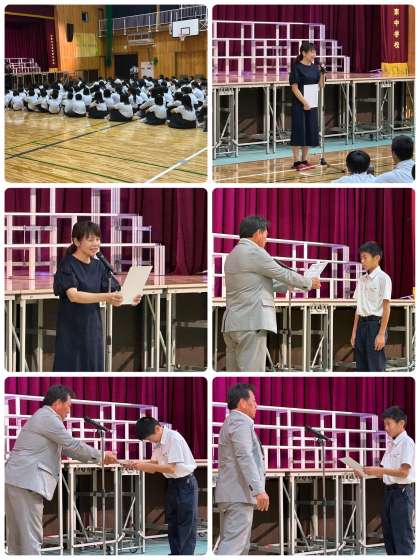 阪井校長先生からご講評をいただき、音楽科の水野先生から総括と審査結果を発表してもらいました。最後に阪井校長先生から最優秀賞に輝いた1組の表彰が行われました。