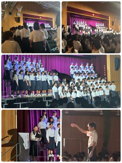 1年生は、合唱コンクールで優勝した1組の自由曲「Yes!」から始まりました。