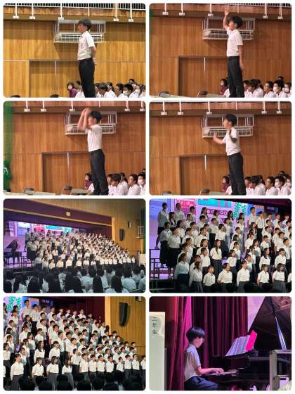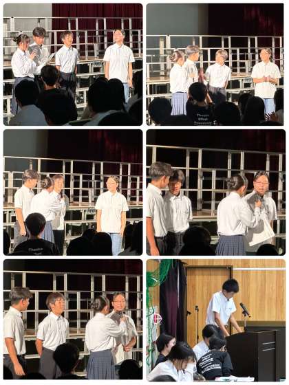 続いて、2年生全員合唱「時の旅人」とインタビューです。