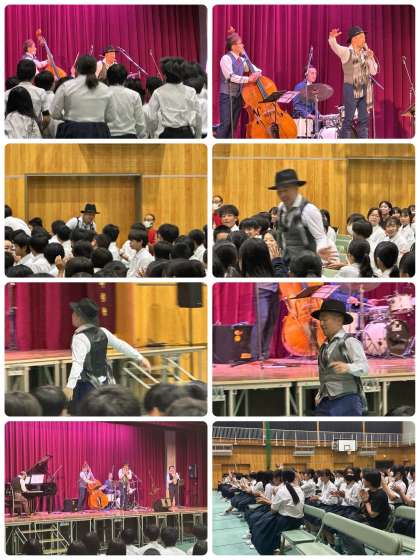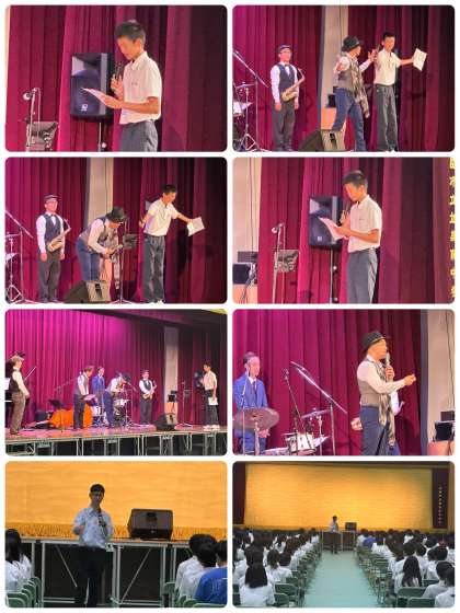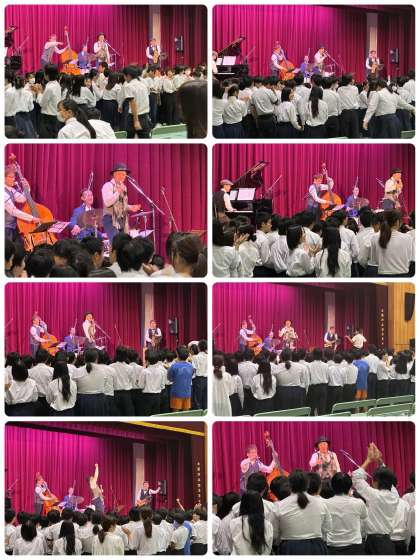 4年前のコロナ禍の中、本校にて、マスクを着用し、一切喋らず、動かずの公演をしたこともあり、今回は大盛り上がりのコンサートにしたかったそうです。期待通り、大熱狂の素晴らしいジャズコンサートになりました。