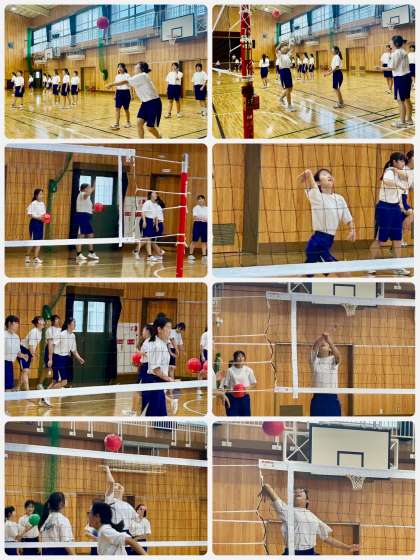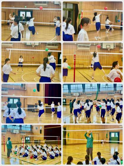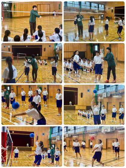 チームで集合後、レシーブ、トス、スパイクの3段攻撃(班で時間制)の練習を開始しました。