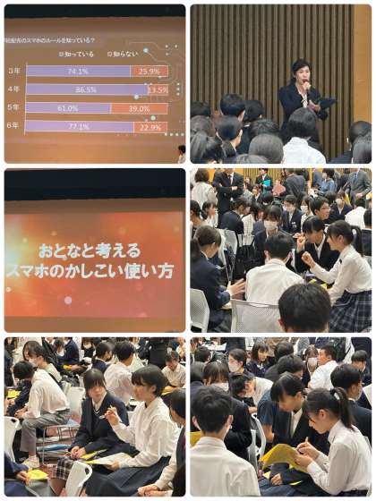 第1部は、代表校による取組報告と代表校への質問タイム、第2部は、「おとなと考えるスマホのかしこい使い方」を協議しました。