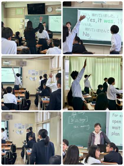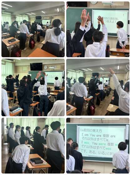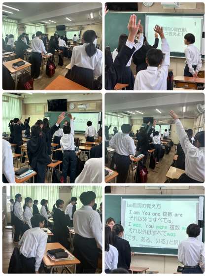 授業の冒頭は、Be動詞と一般動詞の復習をしました。ほとんどの生徒が授業に積極的で、英語科の授業を楽しんでいる様子が伺えました。