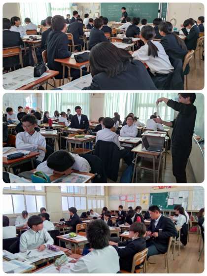 2年生の平和学習では、原爆について学びました。学んだことをもとに、班ごとに自分の考えを出し合い、まとめた意見を発表しました。