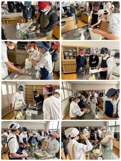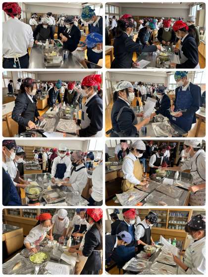 本日12月4日(水)3・4限目は、2学期研究授業の一環として、2年1組の調理実習を見学しました。