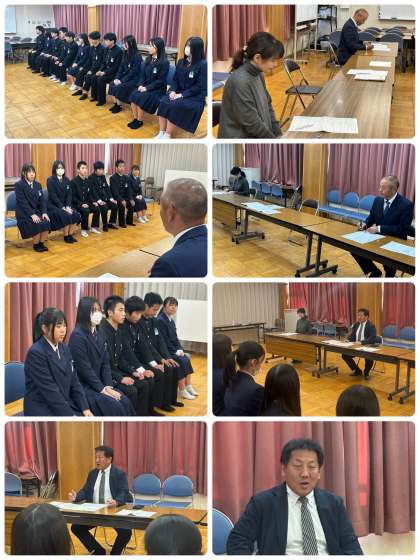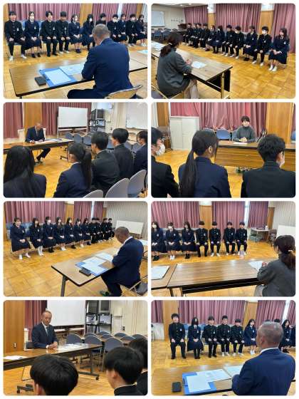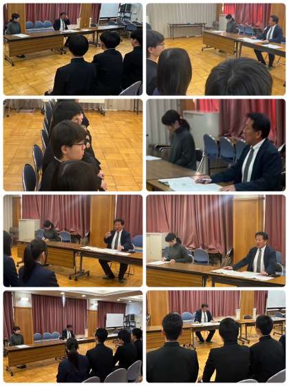 本日12月4日(水)4限目は、3年2組の面接練習を多目的室にて実施しました。