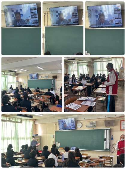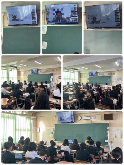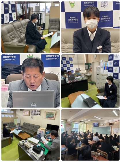 本日12月9日(月)は、校長室にてオンラインでの全校集会を行いました。全校生徒との挨拶の後、阪井校長先生から「いじめ」についてのお話がありました。