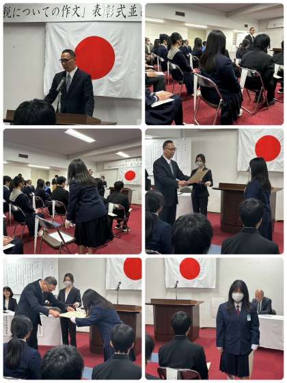 本校からは、3年生の和田さんが「近畿納税貯蓄組合総連合会会長賞」、3年生の川畑さんが「東住吉・平野地区租税教育推進協議会会長賞」を受賞しました。おめでとうございます。