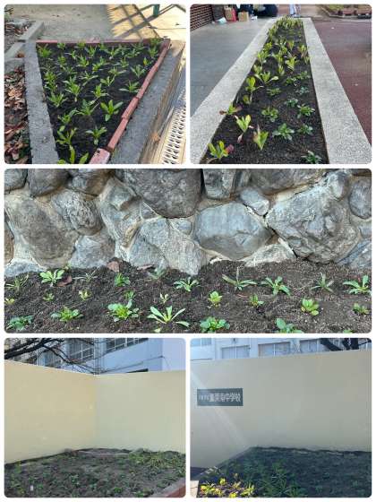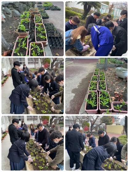午前中は元気アップの皆さんと生徒と一緒に植え替えをしました。