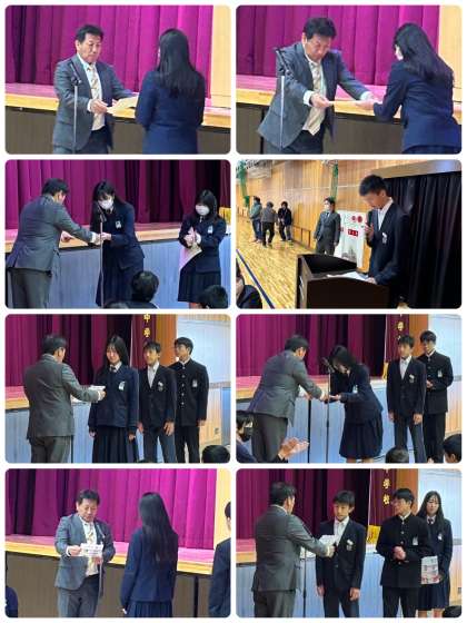 終業式に先駆けて、「税の作文」の表彰、牛乳パック回収の学級表彰を行いました。