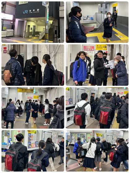 3年生の教員を中心に、6:30から学校での対応のために学校待機をする先生、生徒たちが乗車予定の加美駅、新加美駅にて、生徒たちを見送る先生がいます。