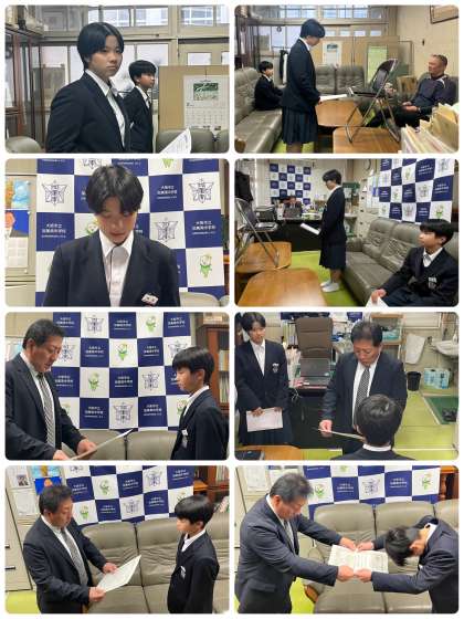 朝の挨拶の後、第4教育ブロックのバドミントン大会1年男子第3位の表彰がありました。おめでとうございます。