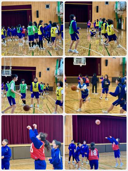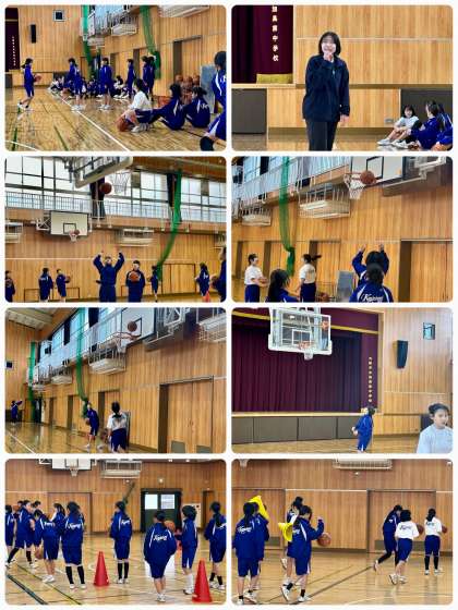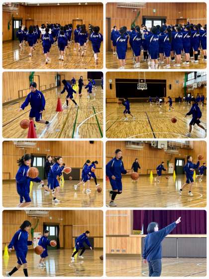 体育委員を中心に、手際良く準備・補強運動を行い、授業の流れを確認して、ドリブル、ゴール下シュート、レイアップシュート、3対3と予定していた授業が行われました。
