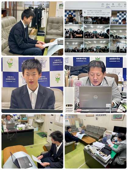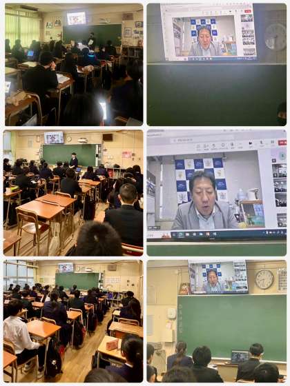 本日3月3日(月)は校長室にてオンラインでの全校集会を行いました。