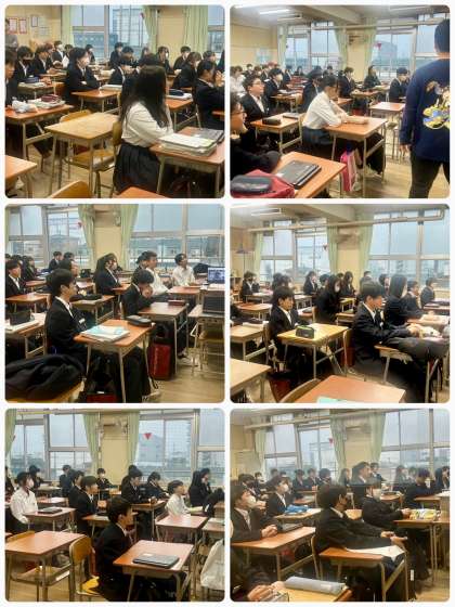全校生徒とのあいさつの後、阪井校長先生からは、「80歳代の人たちが人生で後悔していること」というお話がありました。7割の方々が「挑戦しなかったこと」に後悔をしています。次に「健康に気を使わなかったこと」「人に優しくしてやれなかったこと」と続くそうです。同様に「自分を大事にすれば良かった」と思っているそうです。現在、世界一の長寿国である日本人の2023年の平均寿命は、女性で87.14歳、男性で81.09歳です。人生の大先輩である80歳代の人たちの後悔を肝に銘じて、これからの人生を楽しいものにしましょう。