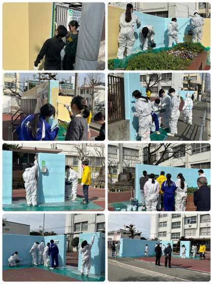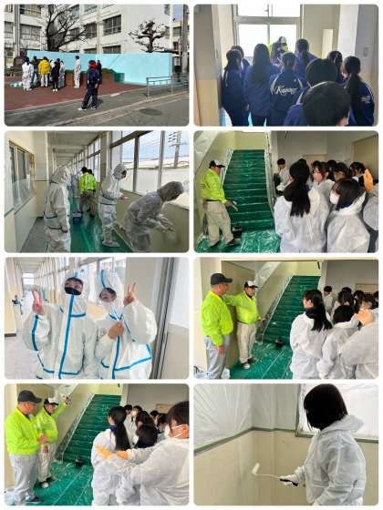 参加生徒が指導員の方から塗装方法等の指導を受けながら、塗装箇所を実習形式で塗装しました。