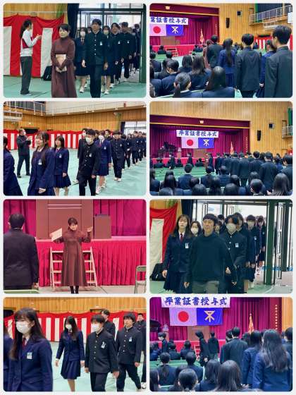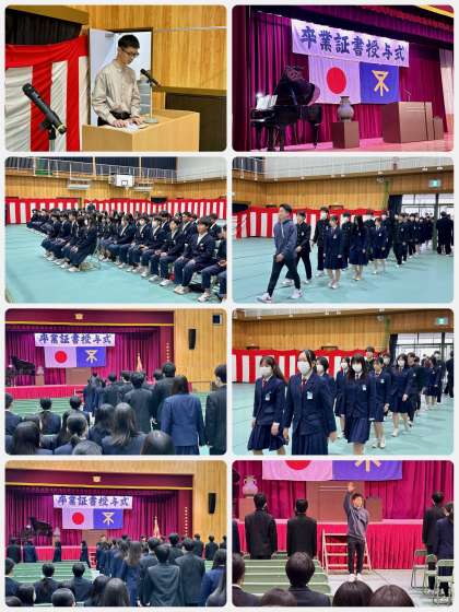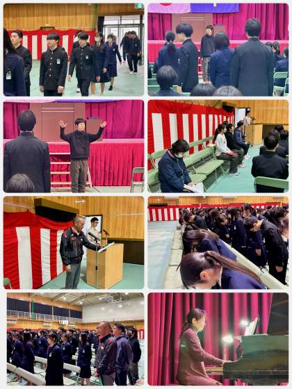 本日3月13日(木)は、10:00から卒業式予行を行いました。式次第通りに「1組入場」のアナウンスにて入場し、2組、3組と続いて入場しました。
