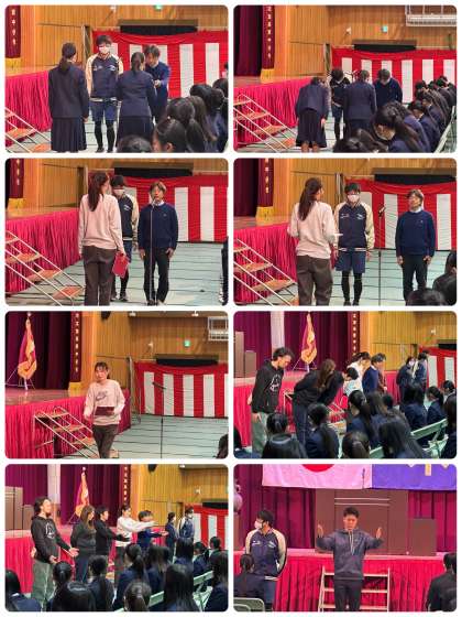 引き続いて、同窓会入会式、保護者代表謝辞、花束贈呈が行われました。