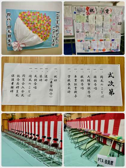 明日の卒業式に向けての準備が完了しました。在校生たちが協力することにより、会場設営に加え、正門や廊下、階段やトイレ等も丁寧に清掃し、卒業式を迎えることができるようになりました。学校関係者全員の支えにより、素晴らしい卒業式を迎える準備が整いました。