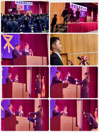 「国歌斉唱」「大阪市歌斉唱」「校歌斉唱」の後は、「卒業証書授与」が行われました。