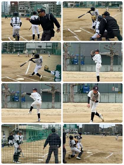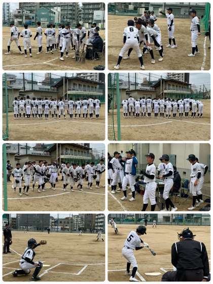 本日3月29日(土)は、令和7年度大阪市中学校春季総合体育大会軟式野球の部4回戰(第2次トーナメント)対市岡中学校戦が新東淀中学校グランドにて開催されました。