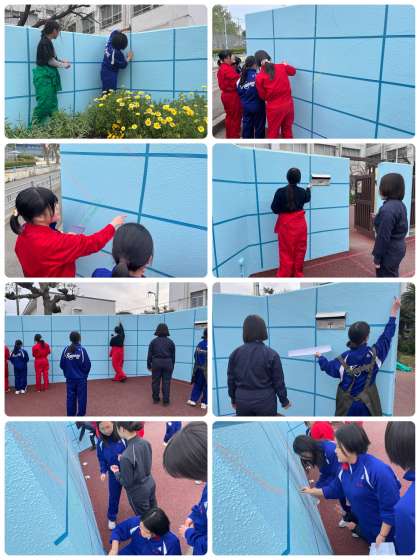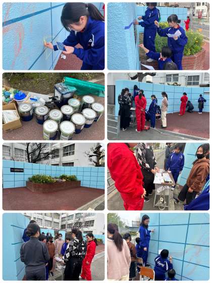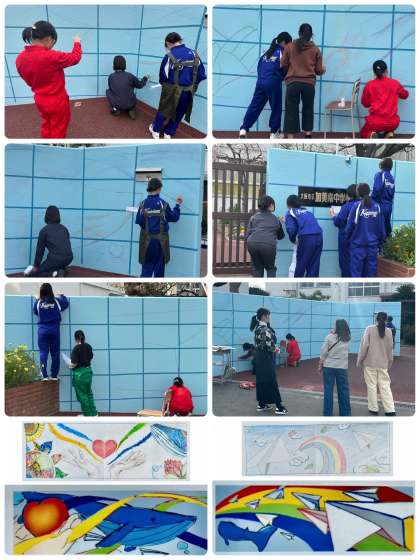 令和8年度の創立50周年記念事業として、本校の正門への壁画作成作業が始まりました。