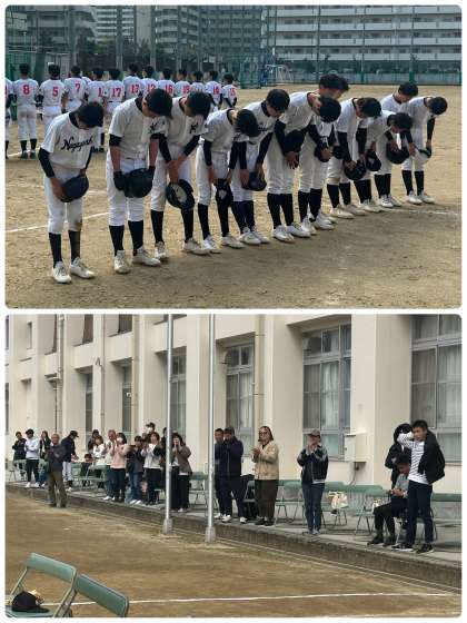 改めまして、大阪市第3位おめでとうございます。この快進撃により皆さんが得た貴重な体験は、経験として自信や自覚となります。皆さんが益々、野球部の活動を通して素晴らしい選手、生徒に成長することを楽しみにしながら、今後も応援させていただきます。頑張ってください。
