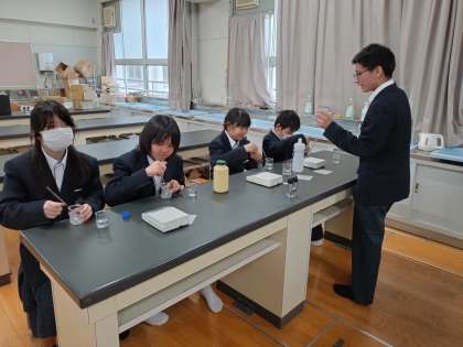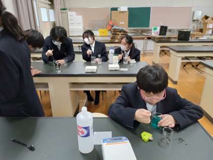 昨日のクラブ紹介を見て、科学部にたくさんの1年生が体験に来てくれました。