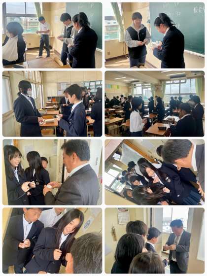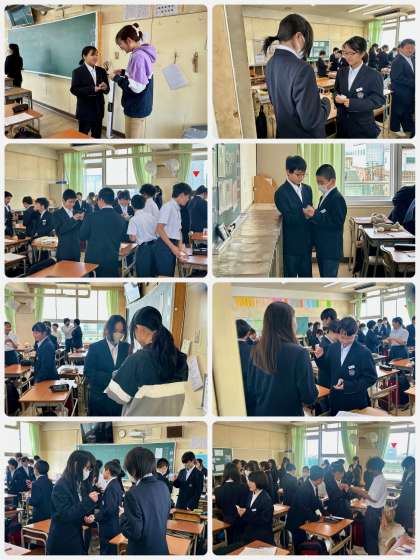 本日4月14日(月)1限目の「道徳」で1年生は、「名刺交換」を行いました。