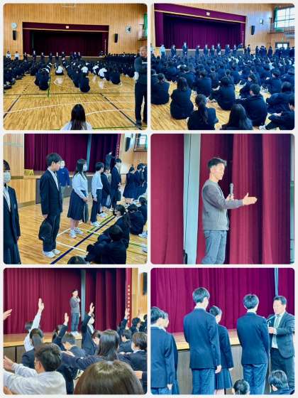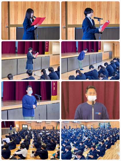 「挨拶の大切さ」についてのお話があり、挨拶の意味を感じながら、挨拶力が自分の財産になることを強く意識し、相手の目を見て、笑顔で元気よく、自分から先にあいさつをするようにしましょうとお話されました。