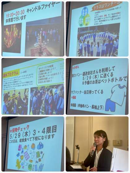 本日4月18日(金)の午後4時00分から、北館3F多目的室にて、修学旅行保護者説明会に続いて一泊移住保護者説明会を実施しました。