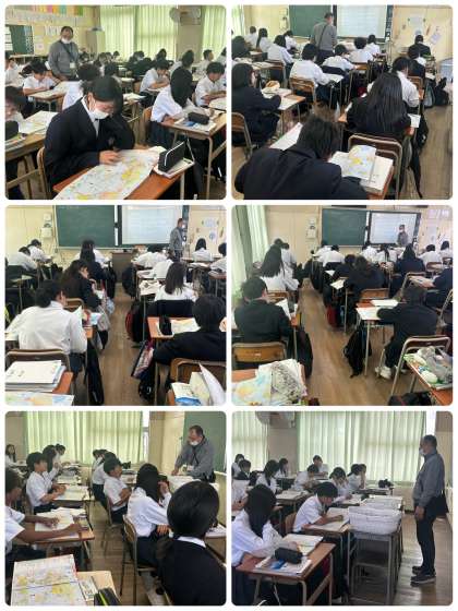 本日5月1日(木)3限目の1年生の授業の様子です。上から順に、1−1(理科)、1−2(社会)、1−3(数学)です。