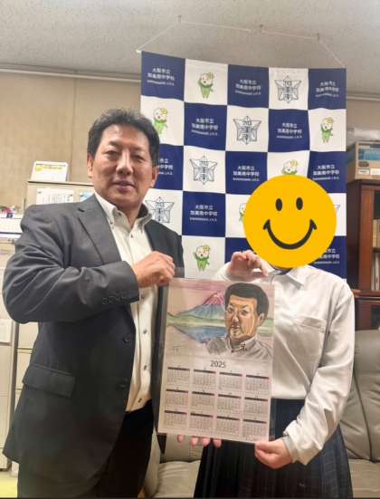 本日、2025年度版の阪井校長先生カレンダーをいただきました。