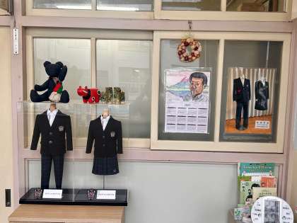 本人の希望で顔をわからなくしていますが、美術部の3年生女子にいただきました。校長室の前に飾ることにしました。