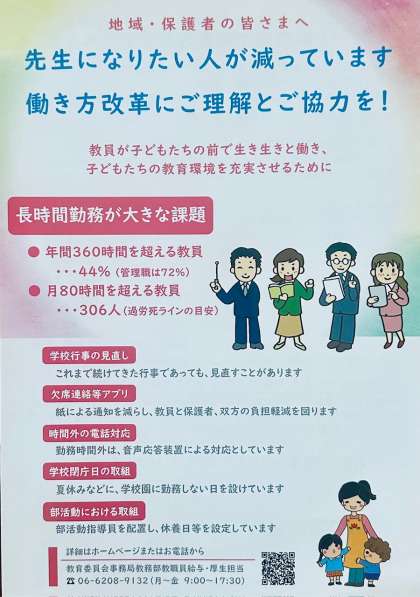 教員の働き方改革に関するチラシ(市長メッセージ)→教員の働き方改革に関するチラシ(市長メッセージ)