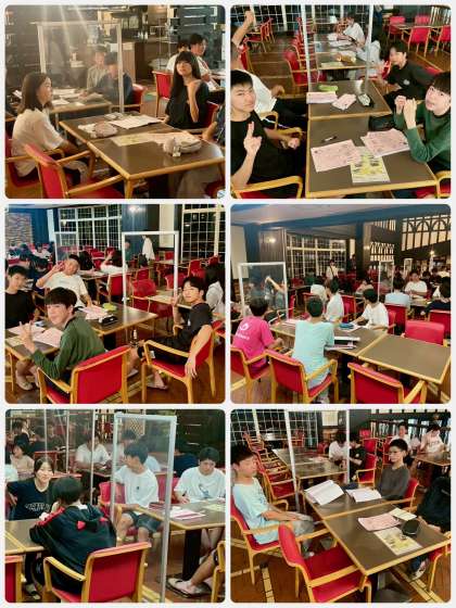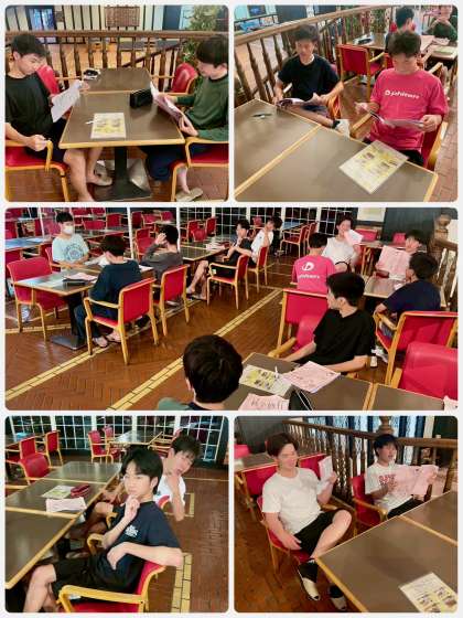 今日の反省と明日の打ち合わせのため、1F「ティーラウンジりりかる」にて、室長会議が行われました。