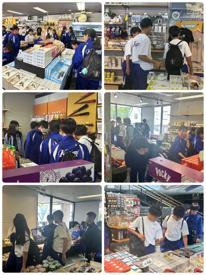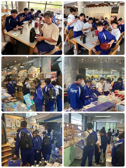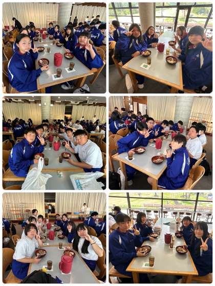 1・2組の昼食(牛丼)と3・4組の買い物の様子です。
