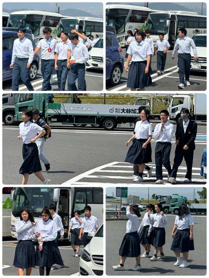 梓川サービスエリアにてトイレ休憩をしました。体調を崩している人がいなく、全員が元気に過ごしています。