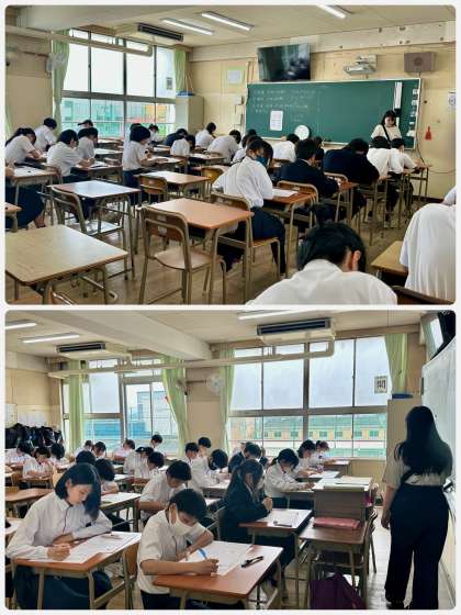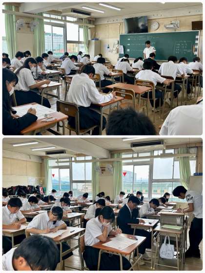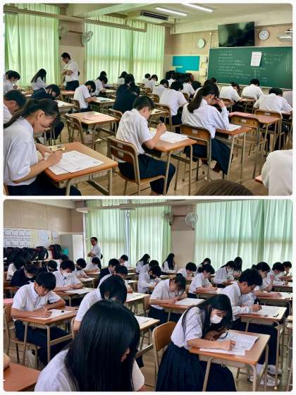 写真は2限目の理科テストの様子です。上から順に2−1、2−2、2−3です。