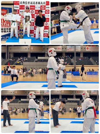 去る5月6日(火)に大浜だいしんアリーナ(メインアリーナ)にて優勝した決勝戦の試合と優勝して喜んでいる様子の写真です。1月10日(土)・11日(日)の決勝大会も頑張ってください。