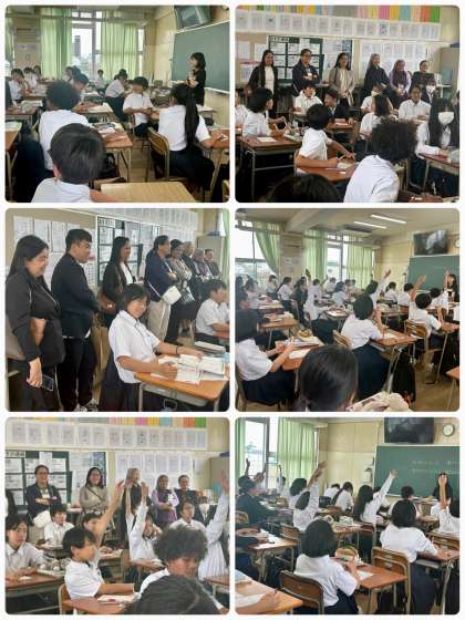 本日5月27日(火)の6限目は、本校C−NETのジェイソンを通じて、フィリピンから8名の方々が、日本の中学校を視察するために加美南中学校を訪れ、授業見学を行いました。